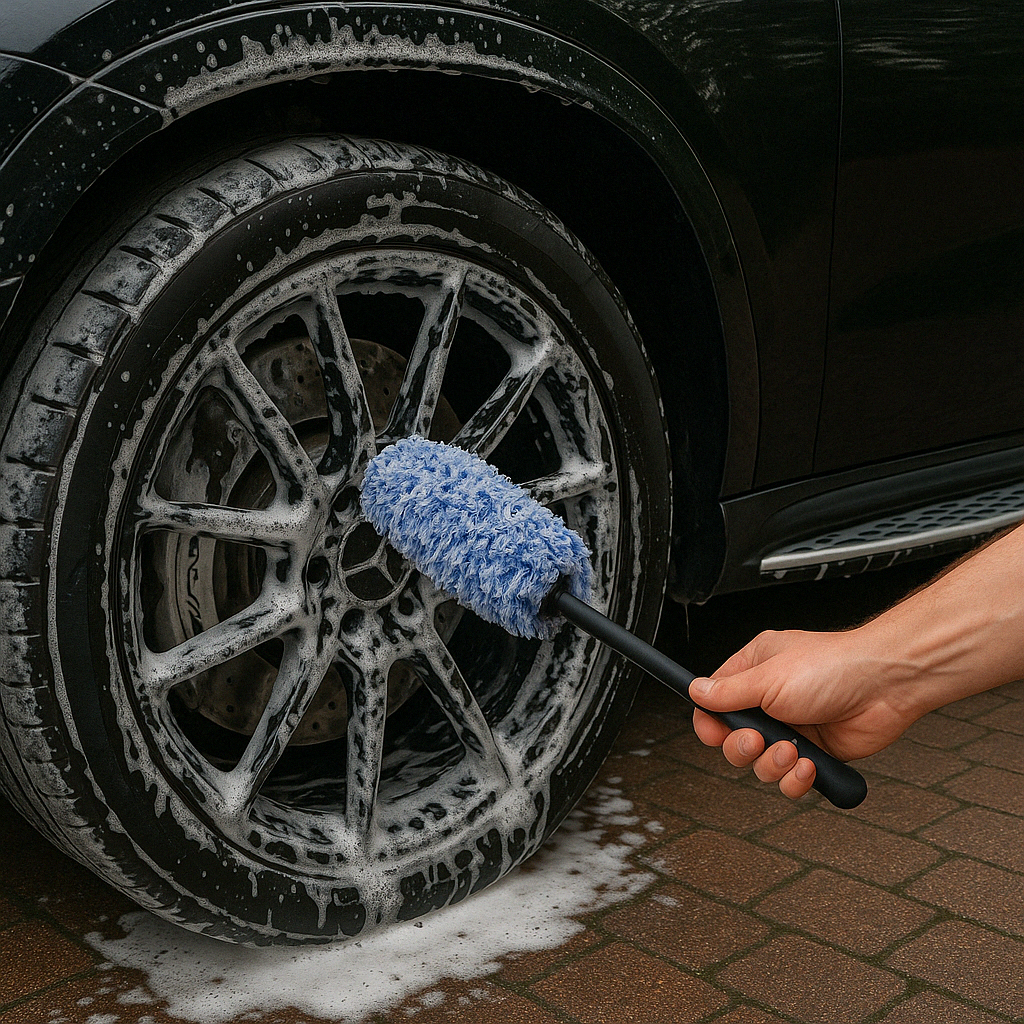 Die Premium-Felgenbürste sorgt für eine gründliche und schonende Reinigung deiner Felgen. Die weichen, dichten Borsten entfernen selbst hartnäckigen Bremsstaub und Schmutz, ohne die Oberfläche zu beschädigen. Dank ergonomischem Griff liegt sie perfekt in der Hand – ideal für alle Felgentypen.